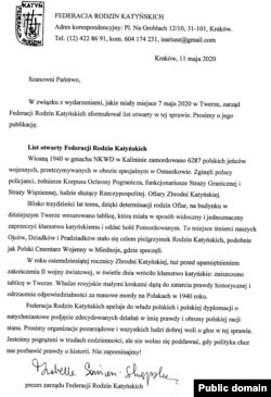 Федерация Катынских семей призывает польские власти и польскую дипломатию предпринять решительные действия во имя правды и защиты польской государственности. Просим неправительственные организации и всех людей доброй воли возвысить голос в связи с этим событием.